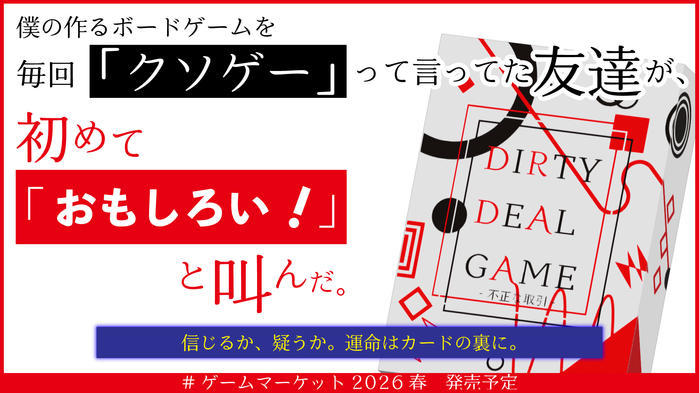- このボードゲームは、2026年5月に開催される『 ゲームマーケット2026春 』にて出展して販売しようと計画中です。ゲームマーケット初出展の夢を応援してください。