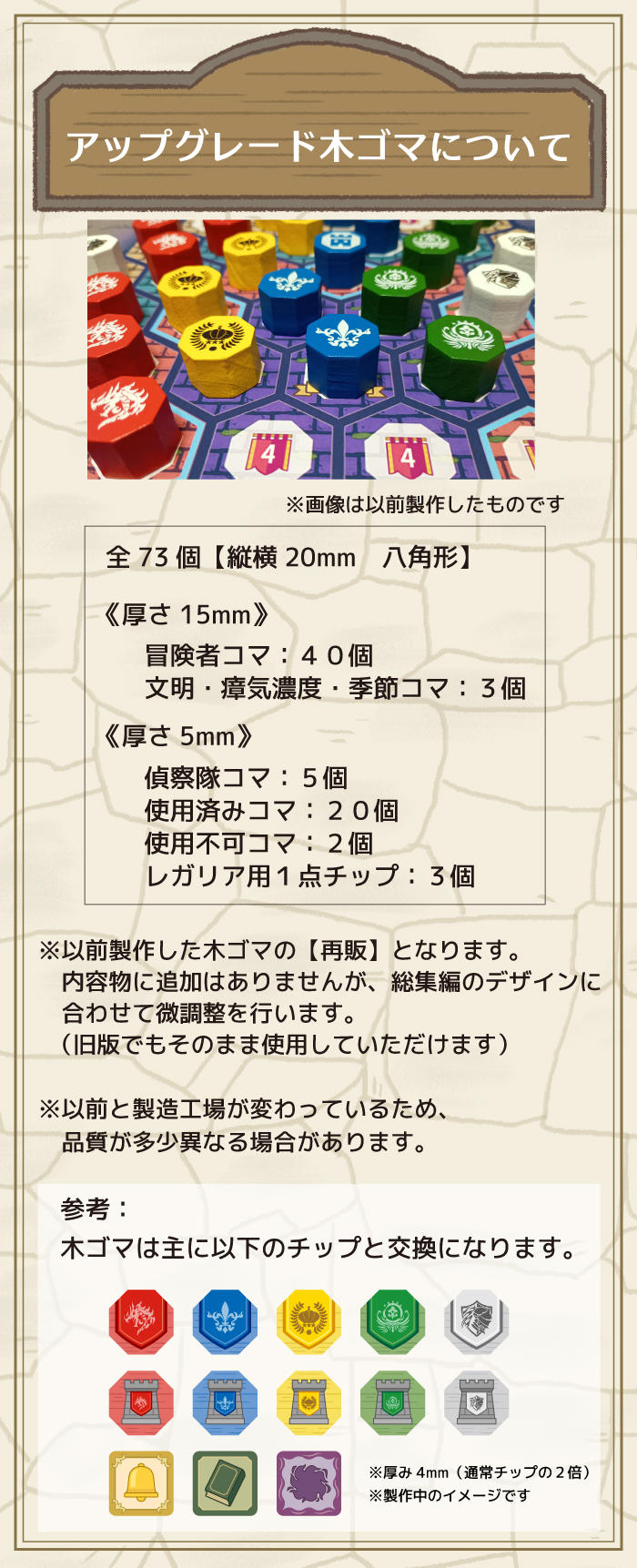 - このプロジェクトは新作ボードゲーム、およびアップグレードキットの「最速予約」です。