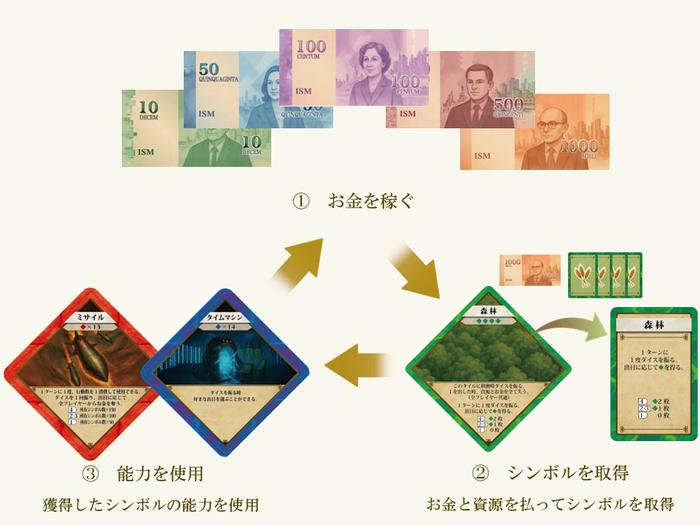 能力を駆使し、早く多くお金を稼いだ人が国を統一(勝利)します。