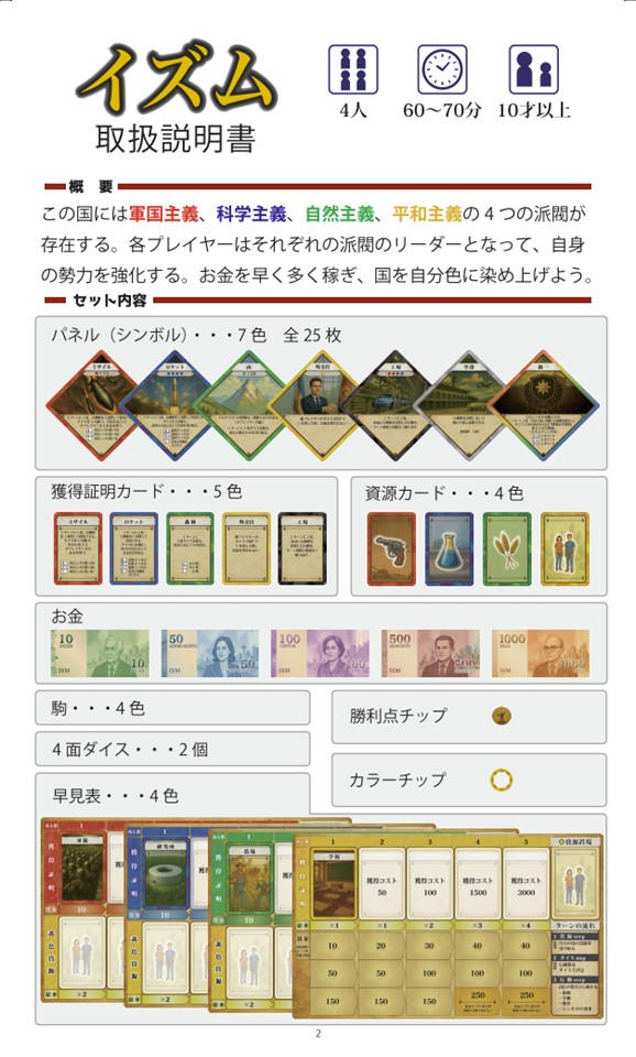 3. 各プレイヤーがプレイする主義(色)を決定し、プレイヤーボードを受け取る