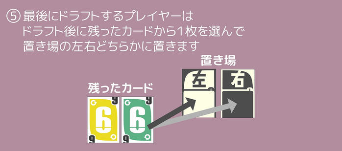 毎ターンカードをドラフトするだけ。 だけど集めたカードは毎ターン上下が入れ替わります。 入れ替わりをうまく使って目指せ高得点!!