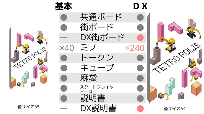 ・基本セットにつきましては、プロジェクト中にゲームマーケットでの頒布も予定しております。DXセットは資金不足のため、皆さんの支援なしでは作成できません。クラウドファンディング専用となります。